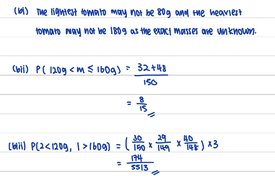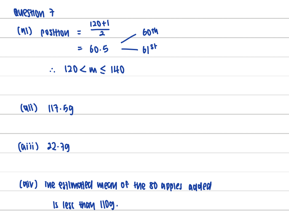 Question 7 (ai, aii, aiv), (bi): S2 Statistics